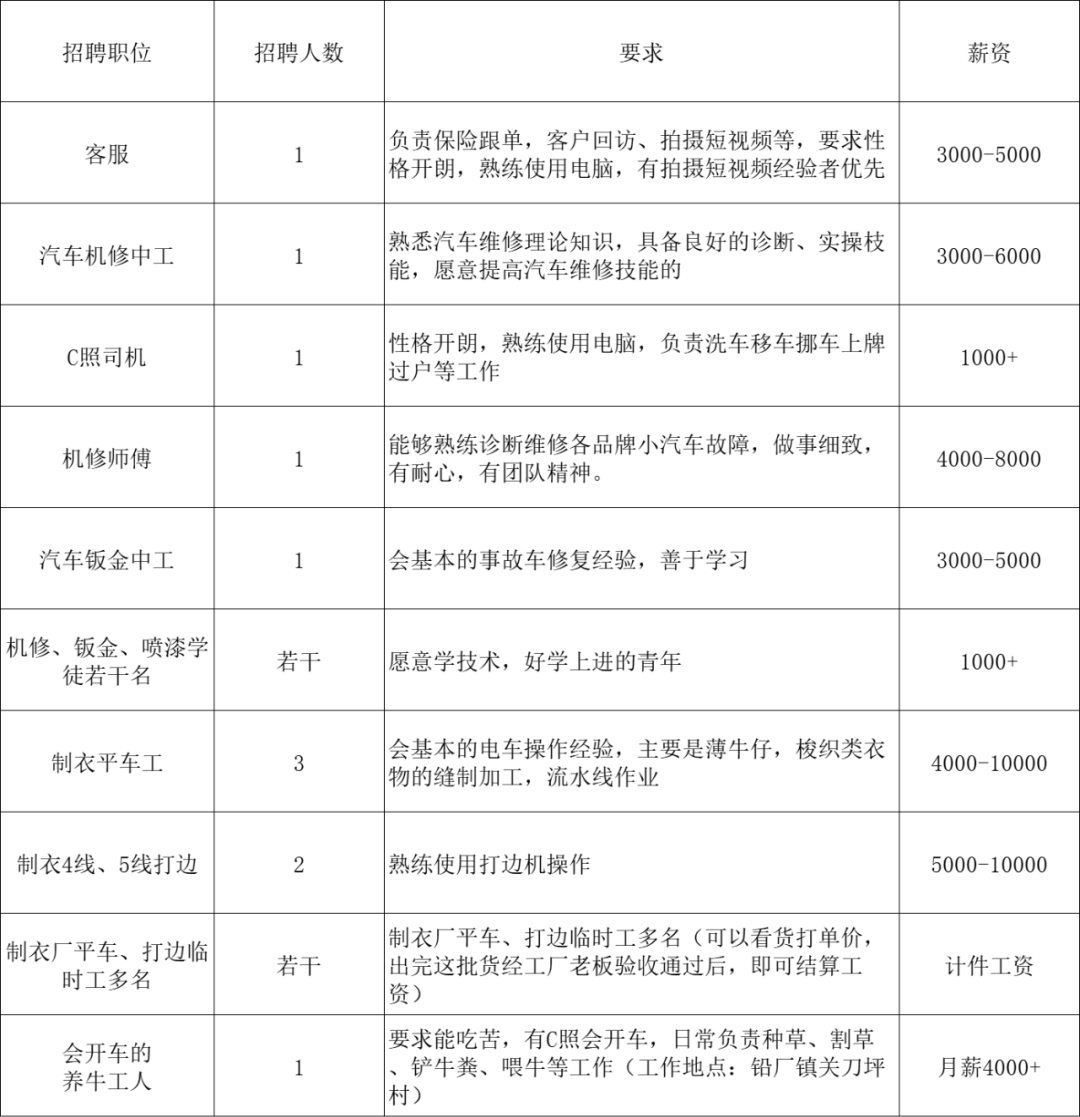 招聘岗位将会持续更新,有招工需求和找工作的朋友们可以联系我们,我们将不定期的发布最新的招工信息,帮助各位求职者找到心仪的工作。