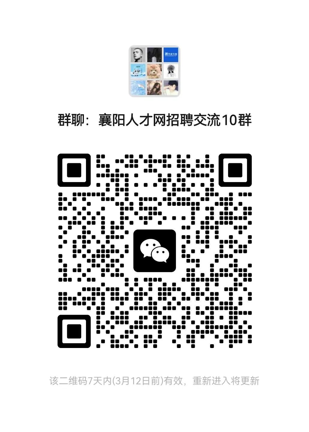 | 扫码免费进襄阳人才网交流群,每日更新招聘岗位~还要超值福利活动等你解锁!坚持有奖励哟~ |