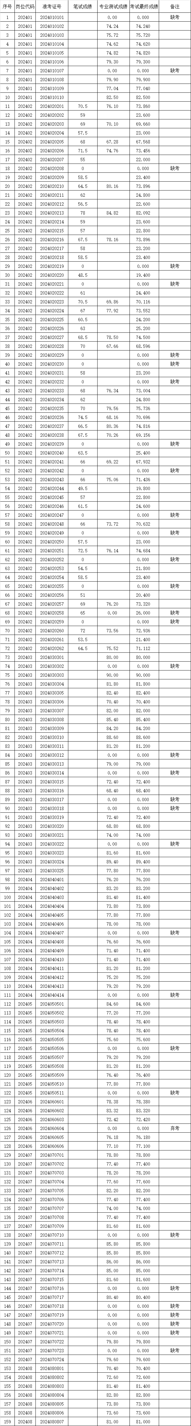 根据《2024年安徽省来安县公开引进紧缺教育人才公告》规定,现将(202401-202408岗位)考试最终成绩公布如下: