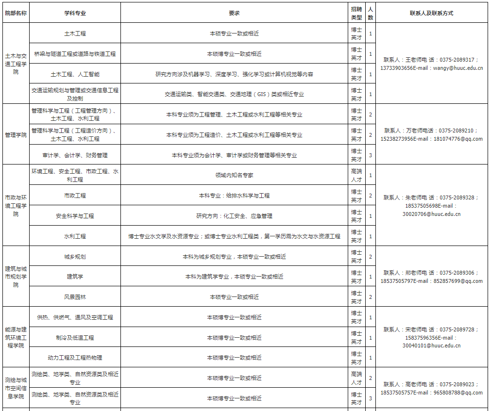 (一)招聘对象:全日制优秀本科毕业生、硕士研究生,应往届均可,年龄一般不超过35周岁。具有高校从教经历、行业工作经验者,或中级及以上专业技术职务者优先。