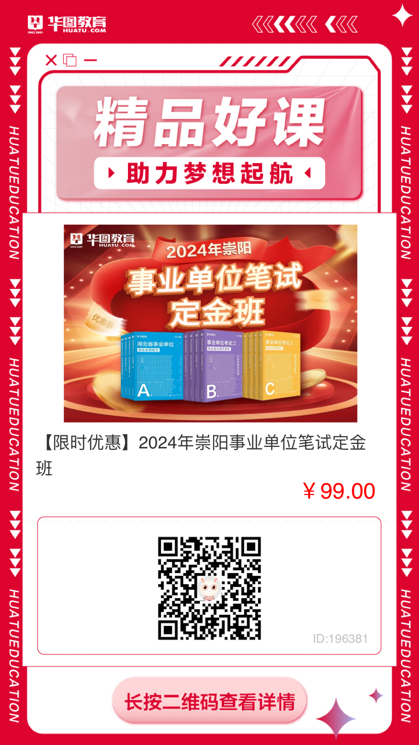 众所周知,2024年咸宁破天荒的没有参加全省事业单位联考,往年不仅有联考还有各种单招,今年到底为什么嘛?不招考,那是不可能的,难道咸宁要放大招,后面尽是单招?今年没有参加联考,单招必然是有的!今天就先回顾一下崇阳的往年招考。