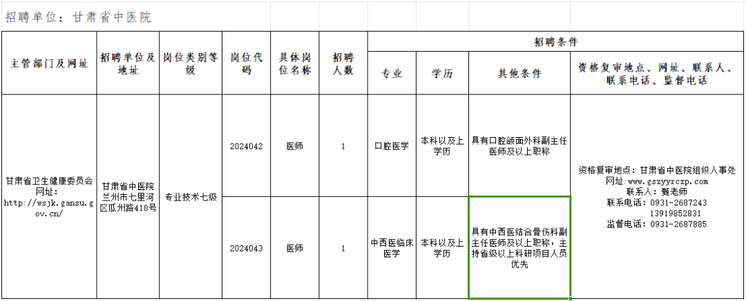 6.具备岗位要求的其他条件(见附件《甘肃省中医院2024年公开考核招聘高层次人才(第三期)岗位列表》,以下简称“岗位列表”)。