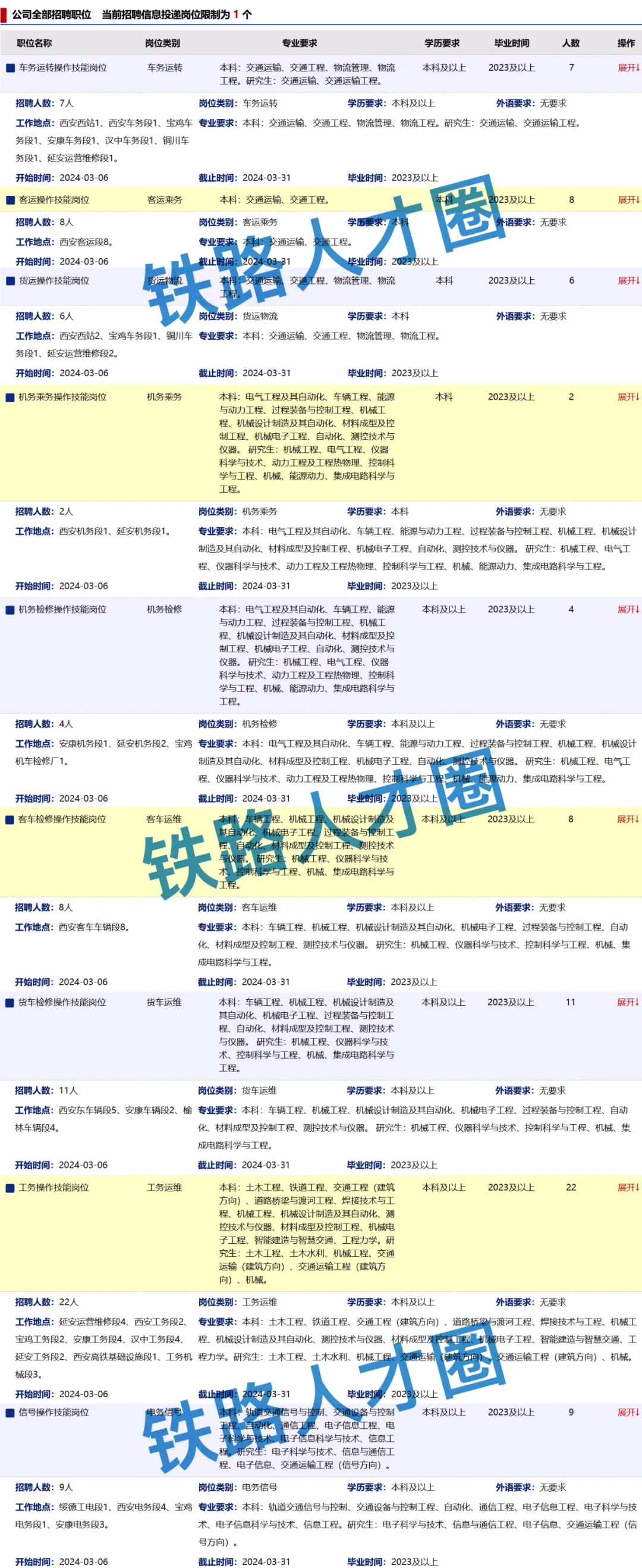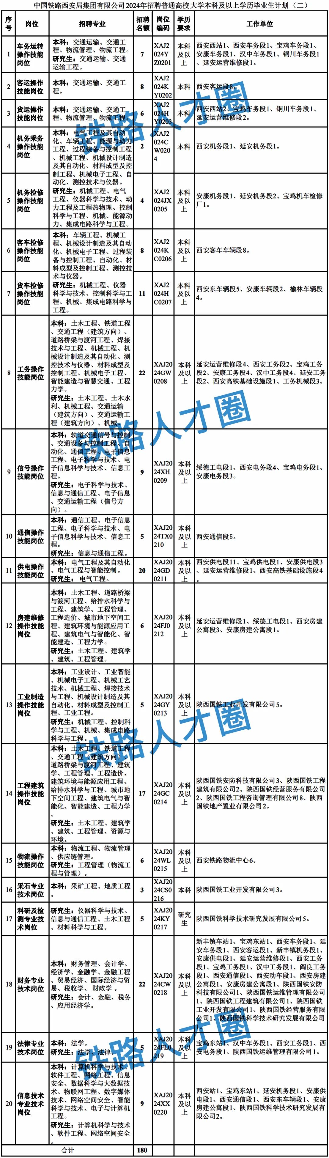 中国铁路西安局集团有限公司根据企业发展需求,拟采取校园招聘方式招聘普通高等院校大学本科及以上学历毕业 生,现将有关事项公告如下: