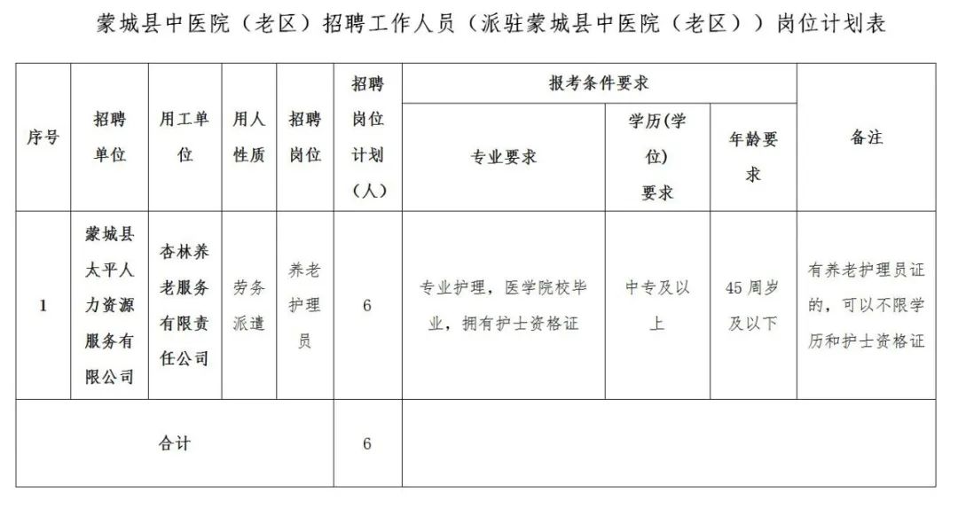 4. 符合《蒙城县太平人力资源服务有限公司招聘工作人员(派驻蒙城县中医院(老区))岗位计划表》中相关岗位条件