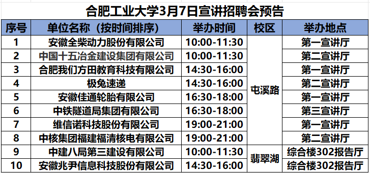 注意:以上信息收集自2024年3月6日12:00,若有变动,请以合工大就业信息官网最新消息为准