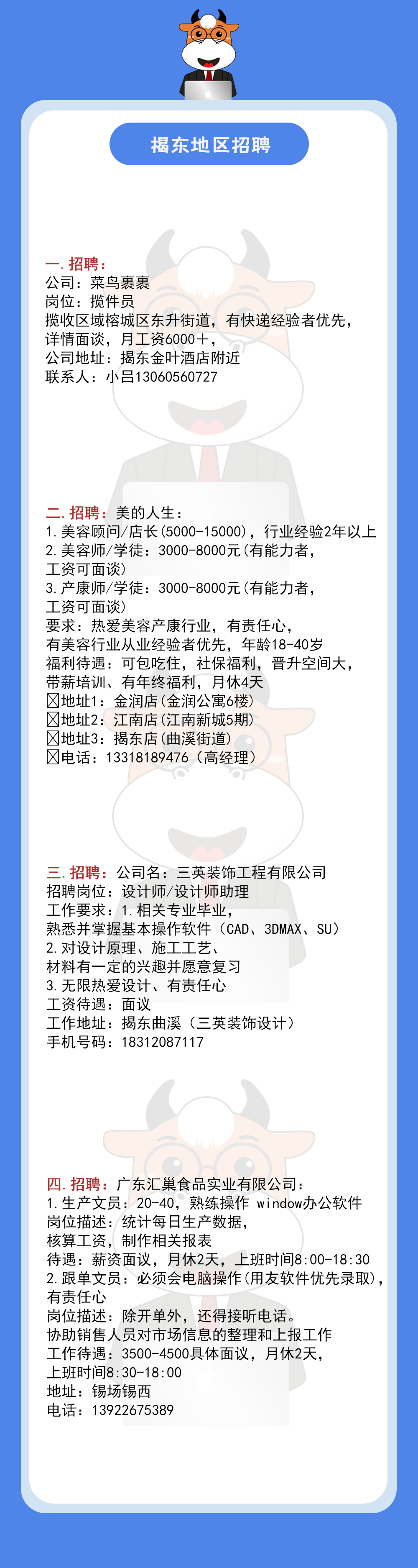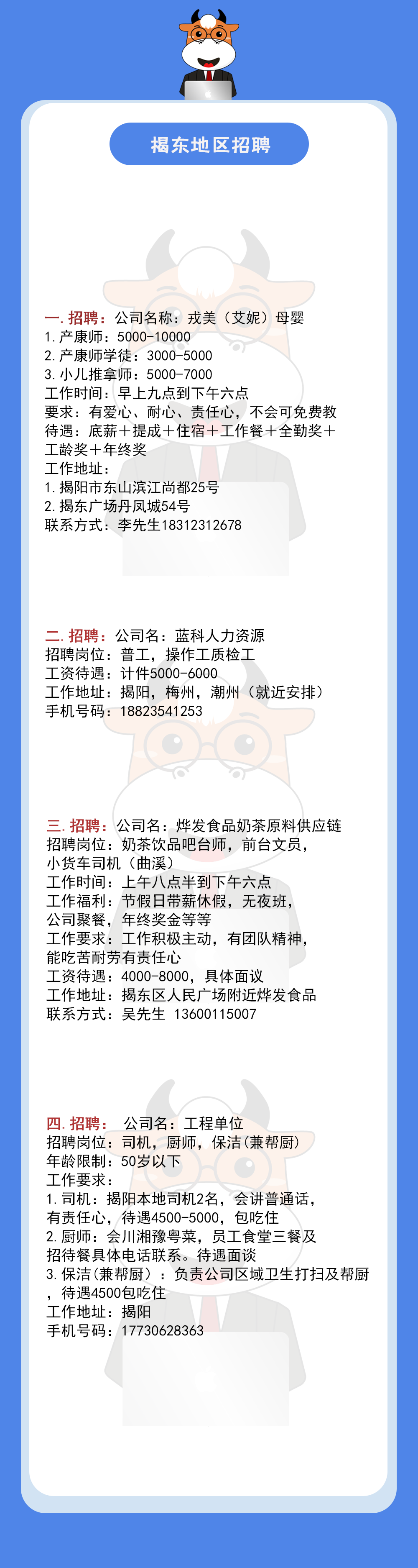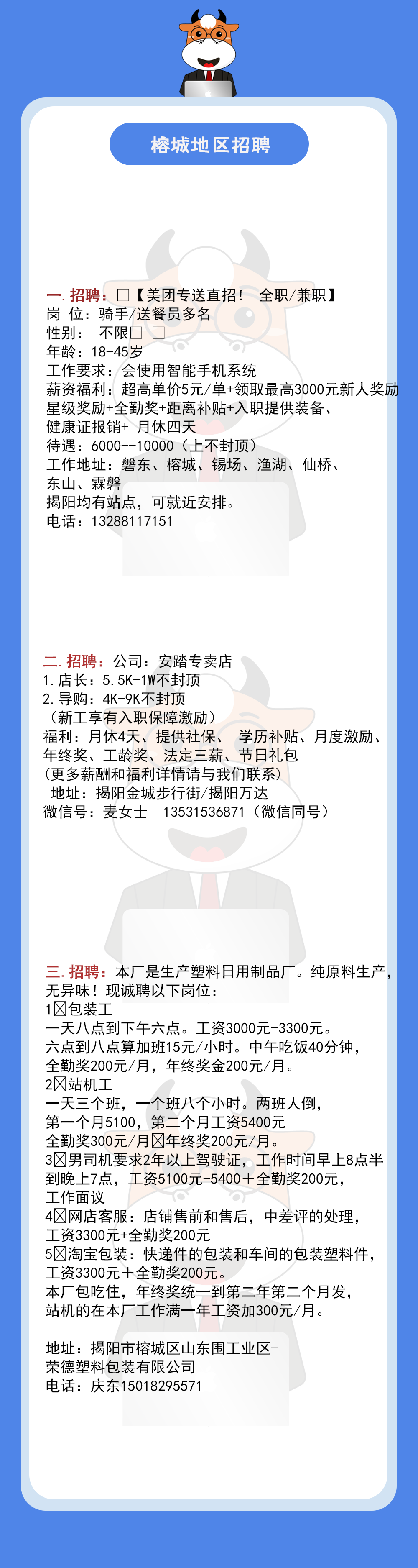 【03.06期】东海岛直聘网|招管培生、店长、厨房学员普工、焊工、生产辅助、仓库辅助等.