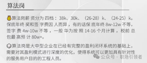 在华为,算法岗和开发岗是公司核心技术部门的重要岗位,两者的薪酬待遇均属于公司内部的高收入水平。具体而言,算法岗位的总包薪酬可以达到最高80万元人民币,而开发岗位的总包薪酬也有可能达到60万元人民币。这样的薪酬水平对于技术领域的专业人士来说具有极大的吸引力。