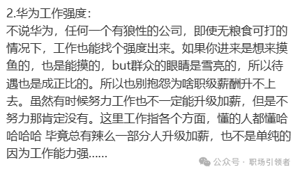 在华为工作,员工不仅能享受到丰厚的薪酬待遇,但同时也要面对相对较高的工作强度。这是因为华为作为一家全球领先的科技公司,其对产品质量和市场竞争力有着极高的要求。因此,公司内部的工作节奏往往非常紧张,员工需要不断地挑战自我,以实现个人价值和职业发展。据前员工分享,尽管工作压力大,但这种环境也促使员工保持高效和专注,从而在职业生涯中取得更多成就。