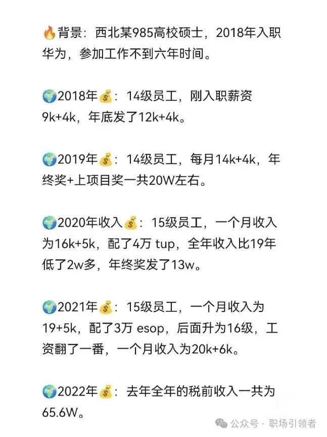 例如,一位2018年加入华为,毕业于西北的一所985工程硕士学位的员工,在短短五年内从14级晋升至16级,其收入也因此翻了数倍。这一跃进不仅是对其个人努力的肯定,也体现了华为对人才的重视和奖励。