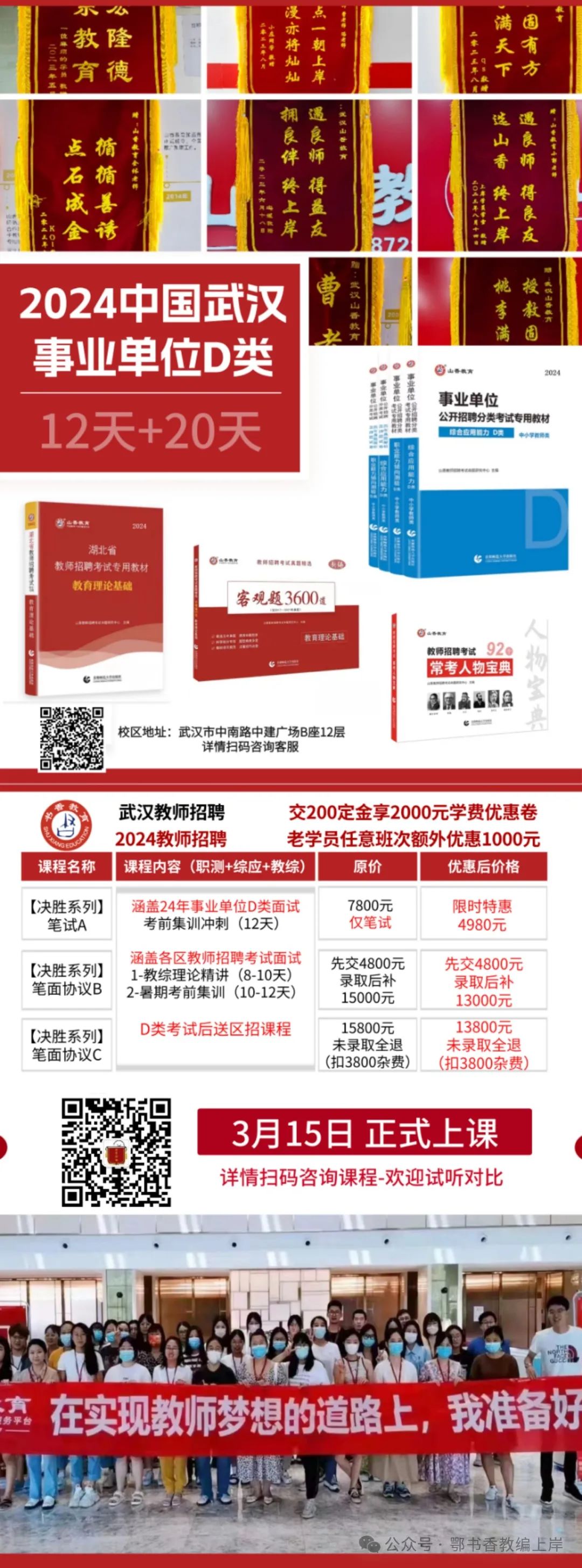 微信识别二维码,添加专属备考顾问 3.报名要求: (1)应聘人员填写《2024年赤壁市普通高中公开招聘教师报名表》、贴近期1寸免冠彩照。 (2)应聘者报名时须提交本人二代有效身份证复印件、学历证书复印件和教育部学历证书电子注册备案表(应届生提供教育部学籍在线验证报告)、教师资格证复印件或相关资料。 4.资格审查要求: 应聘人员应如实填写有关信息,诚信报考,对填报信息的真实性、准确性负责,如应聘人员资格条件不符合岗位要求或填写信息错误,由此产生的后果由应聘人员本人承担。根据《事业单位公开招聘违纪违规行为处理规定》(中华人民共和国人力资源和社会保障部令第35号),对伪造证件、材料、填报内容虚假等骗取考试资格的,一经查实,取消报名或聘用资格。 (三)考试 考试采取免笔试、直接面试的方式进行,参加面试的人员为资格审查合格的报名人员。面试内容由招聘学校确定。重在考察考生的就业意愿度、教师专业素质、教学综合能力、语言表达能力。 1.考试时间、地点:详见校园招聘点在校园就业信息网发布的招聘通知或招聘学校电话通知。 2.面试时应聘人员应携带本人身份证参加考试,未按规定参加考试的,视为自动弃权。 3.从考试合格的应聘人员中择优确定拟聘用人选,招聘学校与拟聘用人选现场签订《就业协议书》。 4.招聘岗位随招聘进展情况进行适当调整。 (四)体检和考察 在赤壁网、“赤壁教育信息”微信公众号发布体检通知、公布体检名单。体检合格后由招聘学校组织实施考核,考核对象应积极配合,主要考核拟聘用人员思想表现、道德品质、业务能力等情况,同时对考核对象的资格条件进行复查。 (五)公示 体检、考核合格的,在赤壁网、“赤壁教育信息”微信公众号进行公示,公示期为7个工作日。举报者应以真实姓名实事求是地反映情况,并提供必要的证明材料或调查线索,以匿名方式反映的问题不予受理。 (六)聘用 经公示无异议的,待取得毕业证、学位证和教师资格证等证件后,按照事业单位管理相关规定办理人事聘用手续,签订《事业单位聘用合同》,明确最低服务年限为一个聘期三年;实行试用期制度,试用期满考核合格的,予以正式聘用;不合格的,取消聘用资格。被聘用人员无正当理由逾期(自接到聘用单位通知7日内)不报到的,取消聘用资格。聘用人员使用事业编制,享受国家规定公办教师各项待遇。 四、其他事项 1.招聘工作由赤壁市人社局、市教育局共同组织实施,招聘学校具体负责面试工作,邀请市纪委参与监督。 2.公开招聘工作的政策性强、社会关注度高。相关单位要严格执行考试录用的有关规定,加强领导,精心组织,密切配合,各司其职,各负其责,确保此项工作有条不紊的进行。 3.参加招聘工作的所有工作人员,必须严格遵守招聘工作纪律,对应当保密的事项严格保密,不得泄露,不得弄虚作假、徇私舞弊,如若违反纪律,一经查实按有关规定严肃处理。 4.应聘人员在招聘期间请关注“赤壁教育信息”微信公众号相关信息,并确保手机通讯畅通。因考生所留手机号码无人接听、空号、通讯不畅等原因导致无法送达相关通知的,相关后果由考生自行承担。 5.考生须诚信报考。对报考人员的资格审查将贯穿于本次招聘工作的全过程。在招聘工作的任何阶段发现报考人员不符合报考条件、未能按要求出具相关资料(原件)或有弄虚作假行为的,一律取消其考试、聘用资格。 6.凡完成体检、考察等程序后列为拟聘用对象的不得擅自放弃岗位,否则将相关情况通报毕业院校及有关单位,并在规定时期内不受理赤壁市教师招聘考试报名申请。 7.拟聘用人员在2024年8月31日前未取得相应学历学位证书、教师资格证书(或教师资格考试成绩合格证明或毕业高校颁发的《师范生教师职业能力证书》),取消聘用资格。在2024年8月31日前未按要求提交个人档案或逾期未报到者,取消聘用资格。 8.校园招聘结束后仍有岗位空缺的,采取正常的笔试、面试程序面向社会公开招聘。招聘方案另行制订,并按新制订的招聘方案组织实施。 9.凡涉及本次招聘重大事项或本方案未尽事宜,由市人社局、市教育局共同研究决定。 本公告由赤壁市人社局、赤壁市教育局负责解释。 |