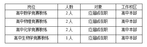 因发展需要,学校拟招聘学科竞赛教练员若干。