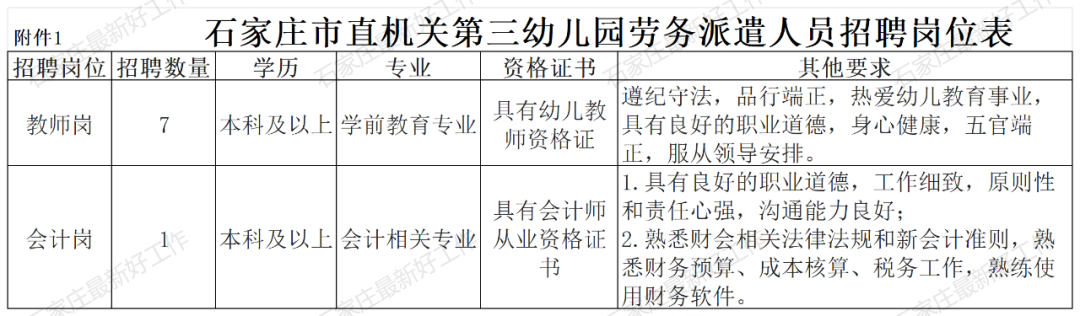 石家庄市直机关第三幼儿园劳务派遣人员招聘8人公告