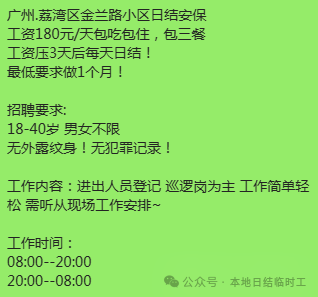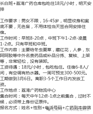更多广州荔湾区包吃包住长白班的工作,可以联系上面微信