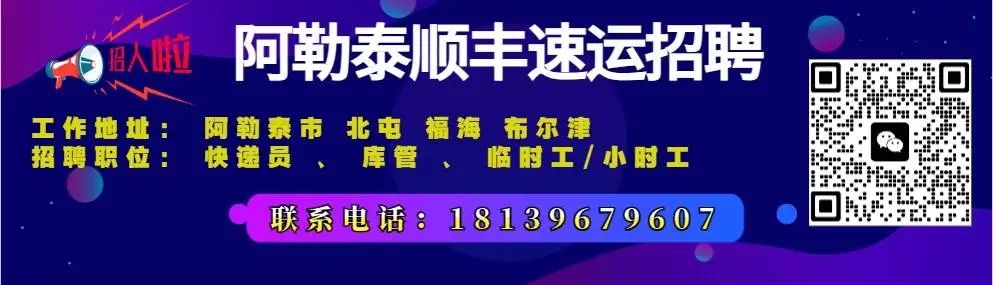 ❗招聘❗招聘❗招聘❗ 阿勒泰市大型海鲜餐饮:【玺宴餐厅·温州海鲜】面向社会招聘以下岗位 ———————————————— 服务员:3800~4500 超市收银:4000~5000 吧台收银:4000~5000 后堂打荷:4000~4500 后堂洗碗:4500~5000 保洁:4000~4500 以上岗位有工作经验者优先,均包吃住,有晋升空间,老板随和,气氛...