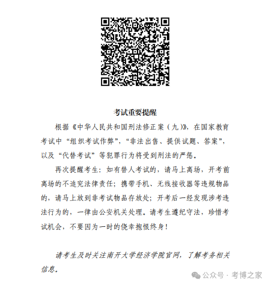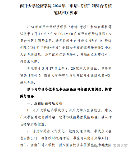 >南开大学经济学院2024年“申请-考核”制综合考核笔试相关要求