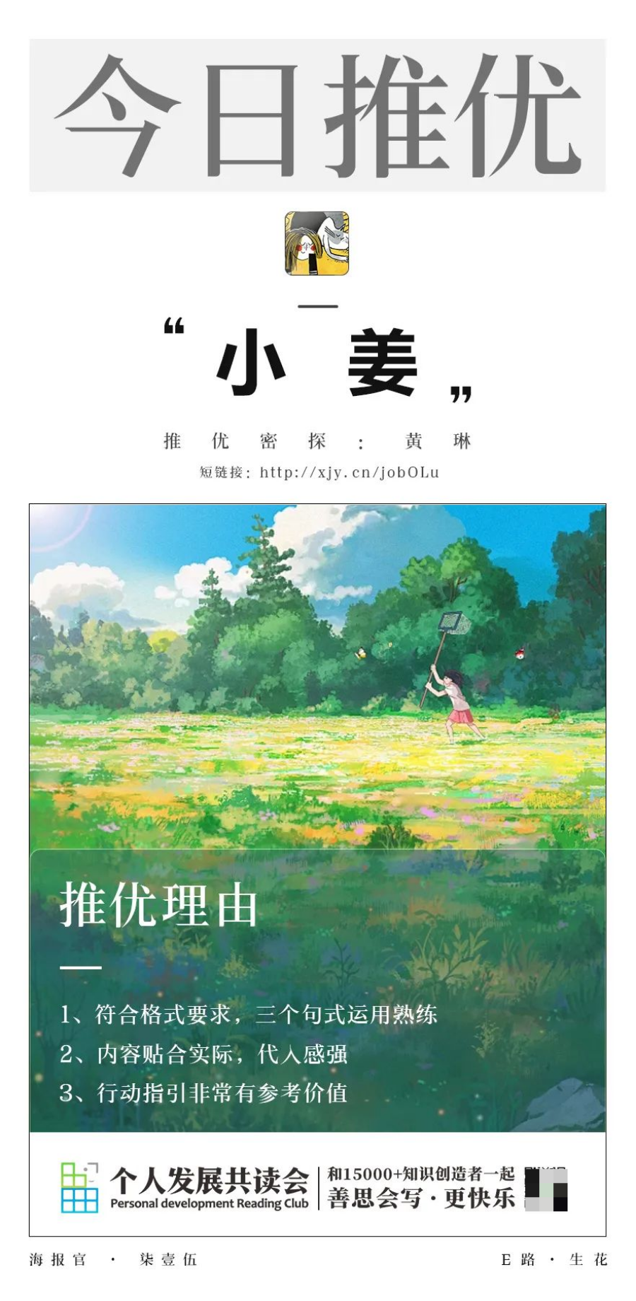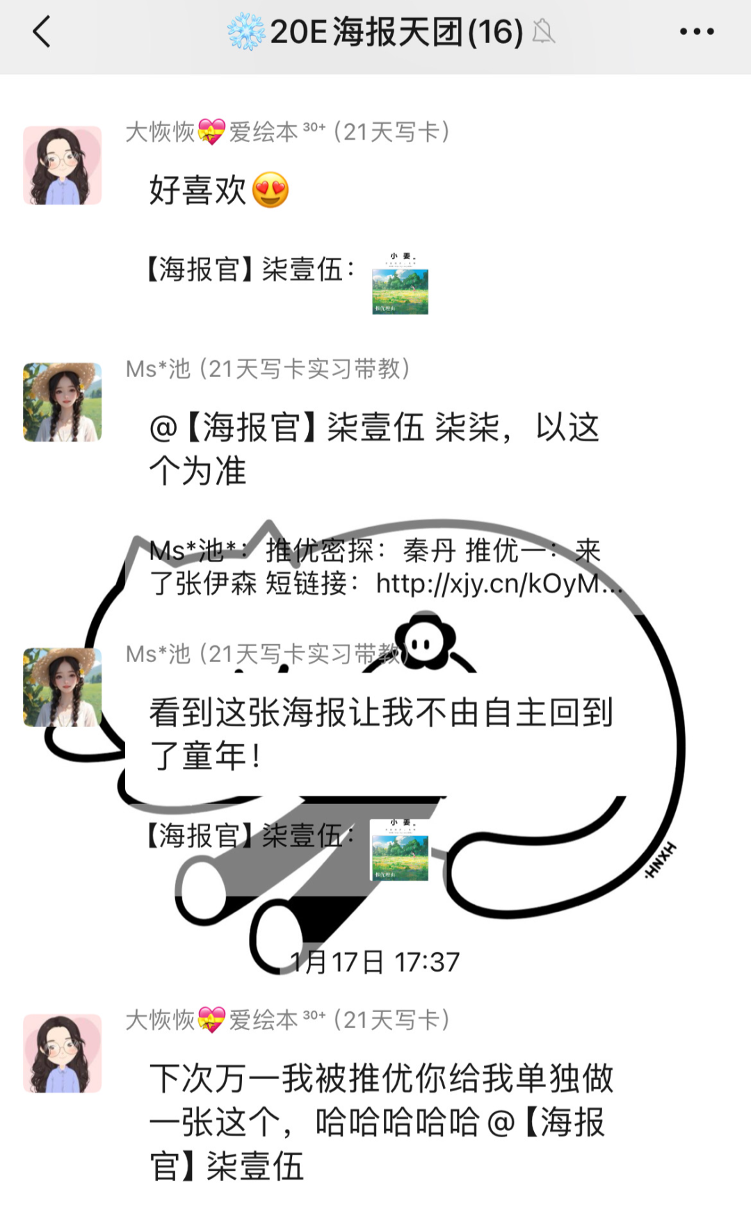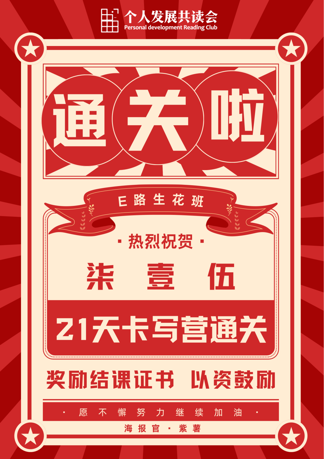 嗨,这里是柒壹伍,今天想分享下近期新的身份-海报官的反思,1月份参加了古典老师21天卡写营成为了海报志愿者一名。