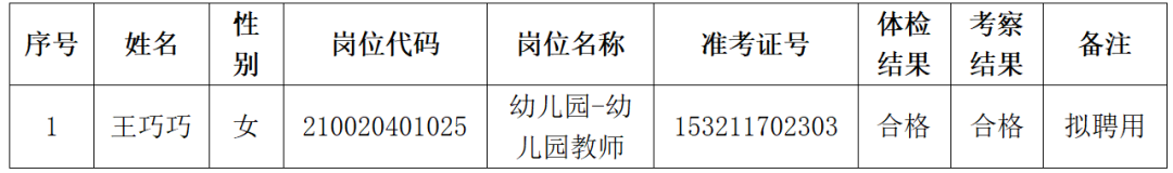 赣州市章贡区2023年教师招聘中因怀孕推迟体检项目的考生,于2024年2月21日进行了补检,经赣州市章贡区2023年教师招聘工作领导小组研究,现将拟聘用人员公示如下: