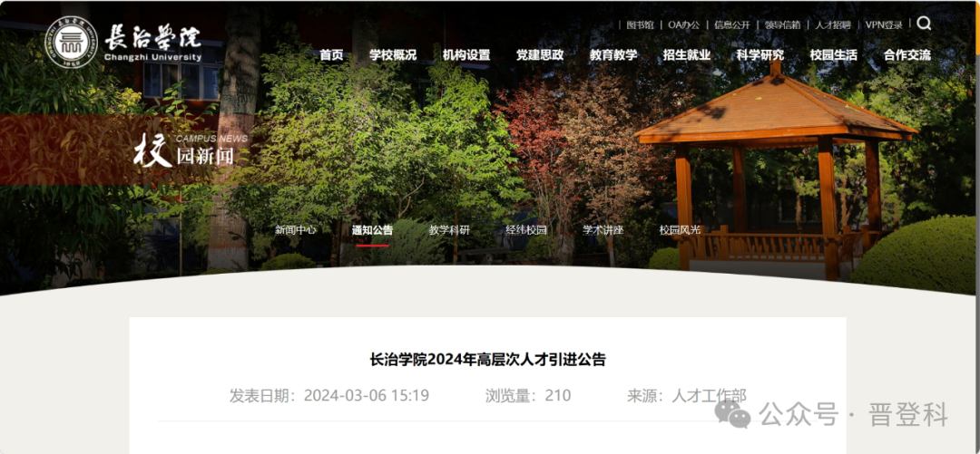 报名方式:应聘者将个人材料,包括个人简历、学历学位证书(扫描件)、专业技术职务证书(扫描件)、主要科研成果(论文、论著、专利)(电子版)、荣誉证书(扫描件)等以压缩包的方式发送至长治学院人才工作部邮箱czxyrcgzb@163.com。