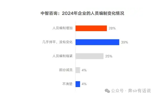 然而,涨薪并不是企业的唯一选择。在人员编制方面,大部分企业都选择了保持稳定。近四成的企业表示今年的人员编制和去年基本持平,28%的企业人员编制增加,同时近三成企业的编制缩紧或部分减员。这意味着,企业在扩张的同时,也在注重资源的合理配置和成本控制。