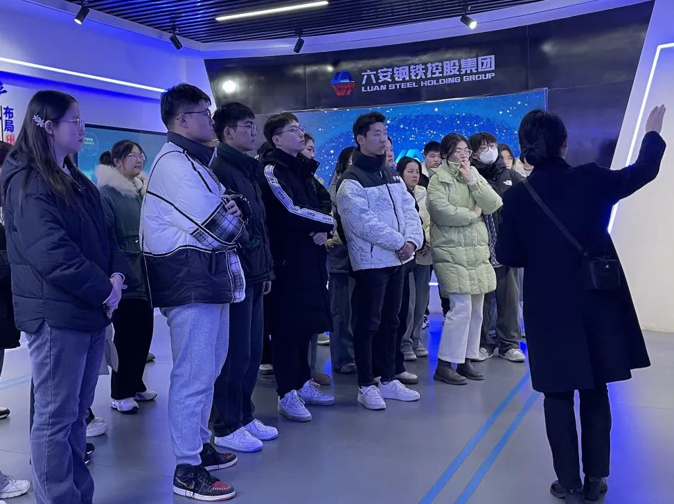 在六安钢铁控股集团,高校学子们参观了智能管控中心,听取了项目电子沙盘介绍,参观了生产调度指挥中心、智慧展厅和红色熔炉,对企业的未来发展规划、产业布局、企业文化、红色文化有了更深的了解。