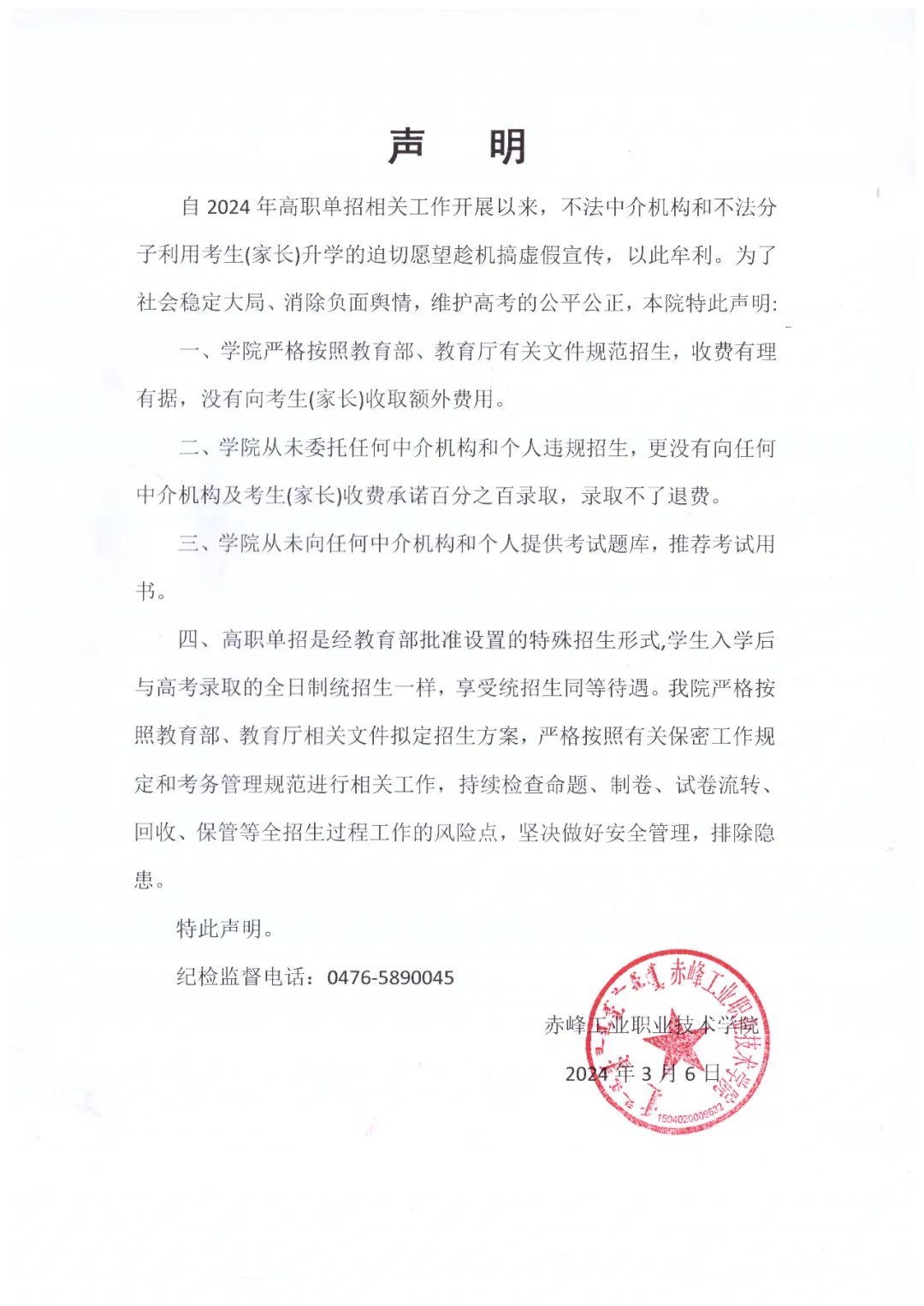 单招进行时 | 重要声明!