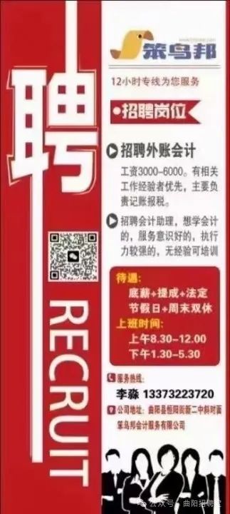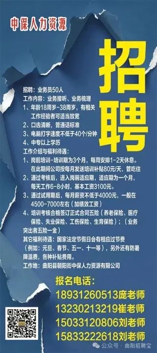 注意:应聘请注明来源(曲阳招聘宝)优先录用