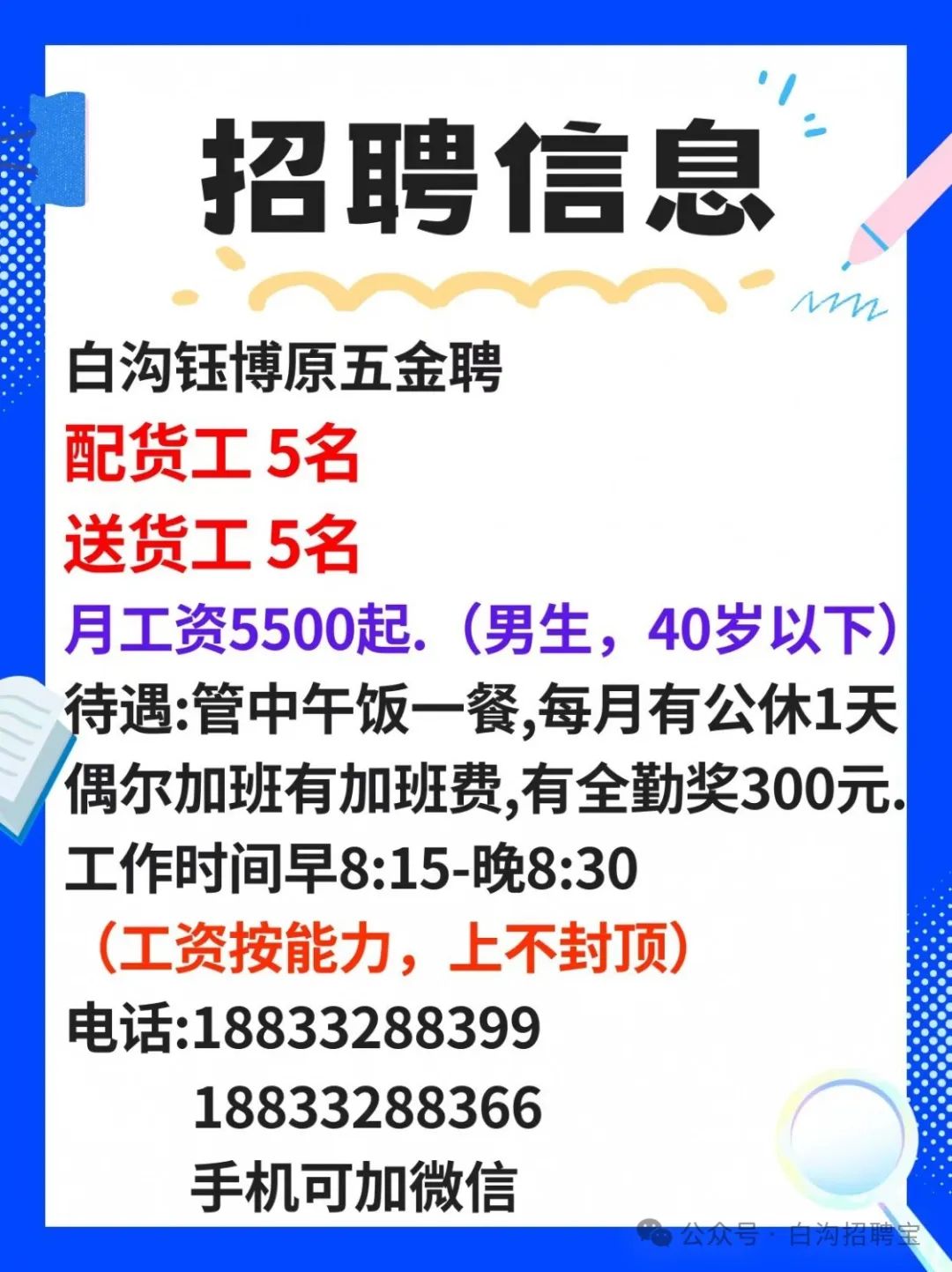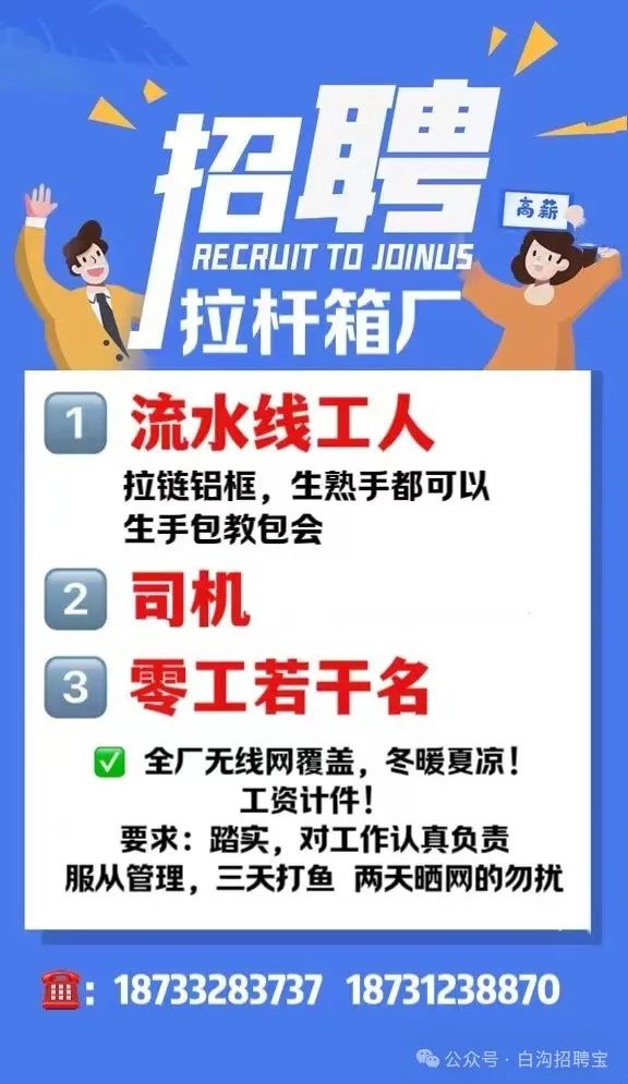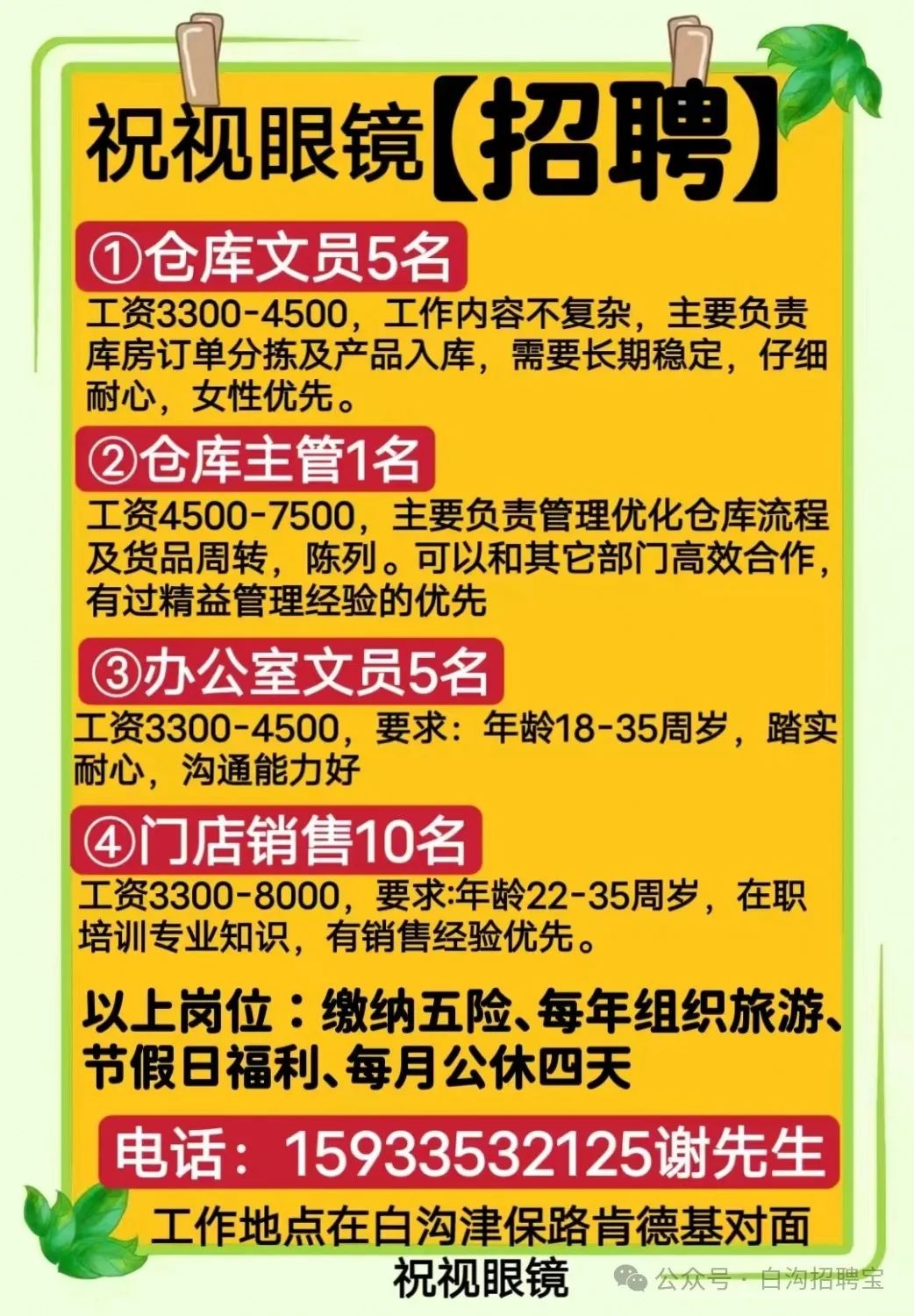 点击上方↑↑↑“白沟招聘宝”订阅最新岗位!