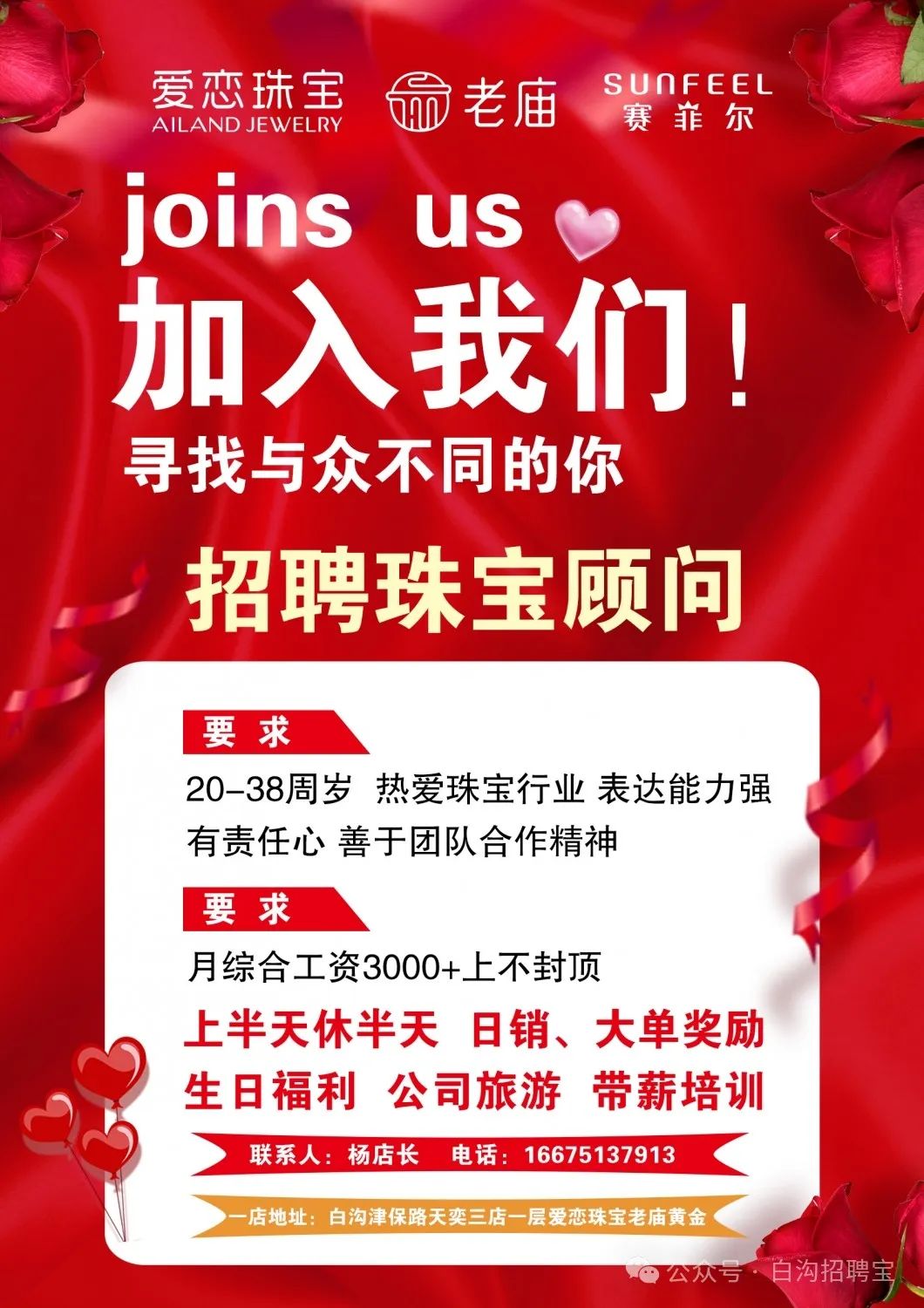 岗位详情:白沟爱恋珠宝/老庙黄金专柜诚聘