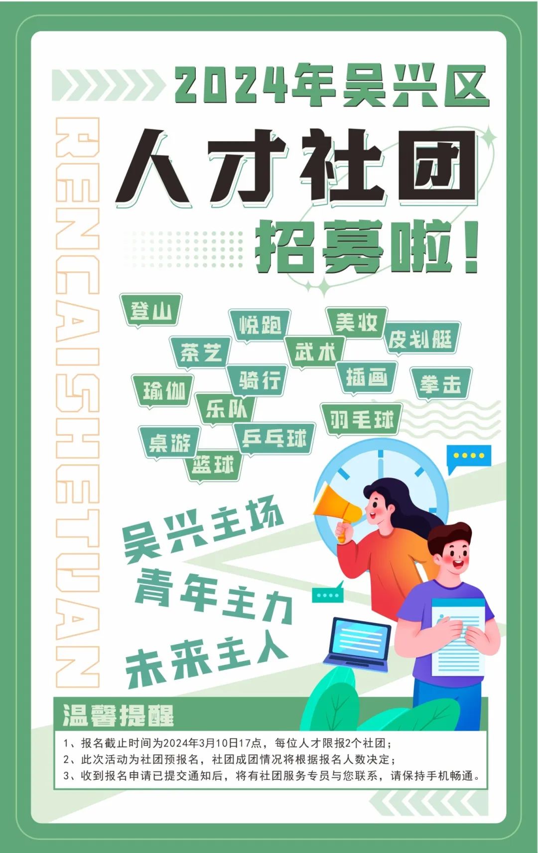 >【非招聘】2024年吴兴区人才社团招募啦!