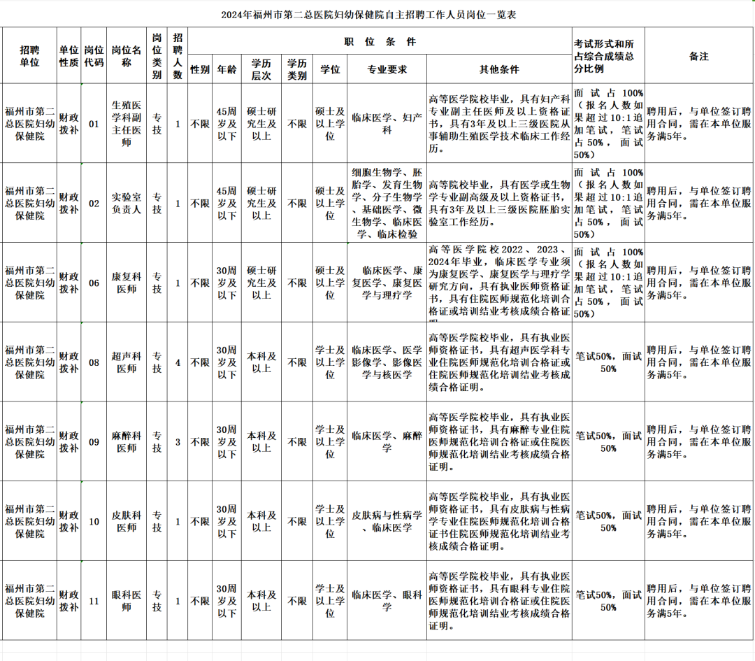 2024年福州市第二总医院妇幼保健院 自主招聘工作人员公告