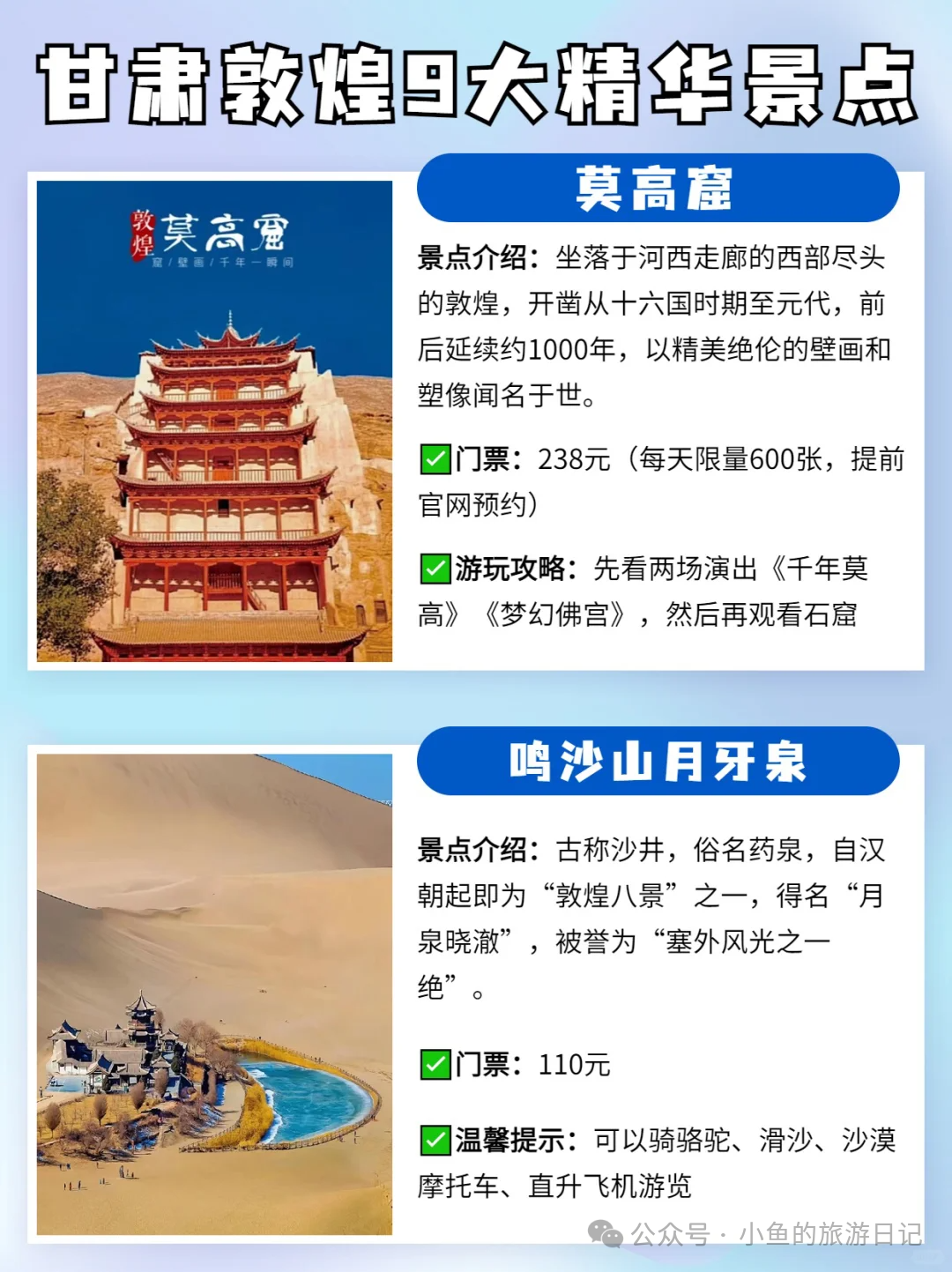 这就是为你准备的甘肃敦煌保姆级旅游攻略,希望你在敦煌的旅程中能够收获满满的回忆和体验。敦煌,这座千年古城等待着你的到来,让我们一起走进历史的长河,感受敦煌的魅力吧!