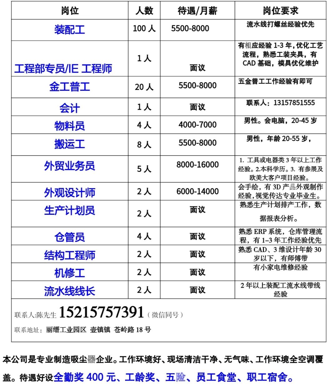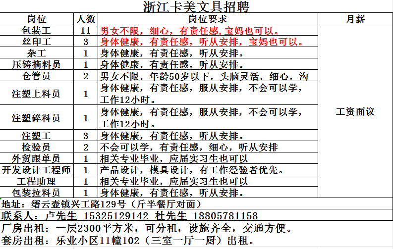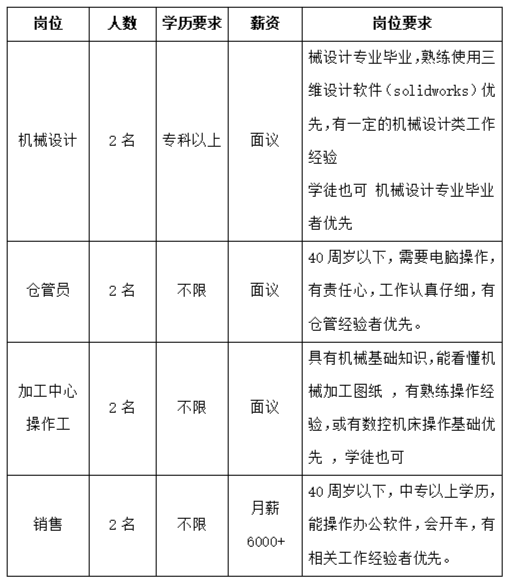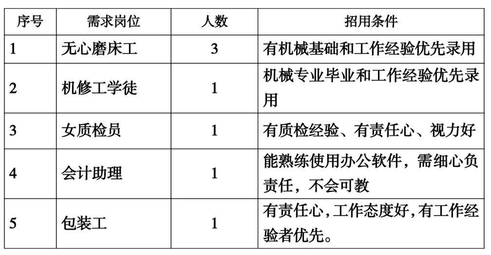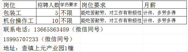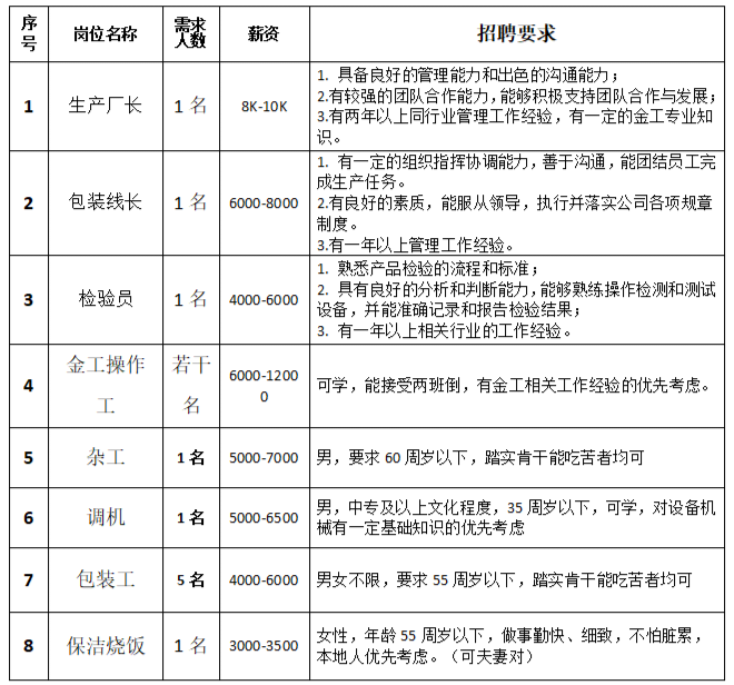 1、男女不限,年龄18-50岁,身体健康,能吃苦耐劳,需适应两班倒工作制。