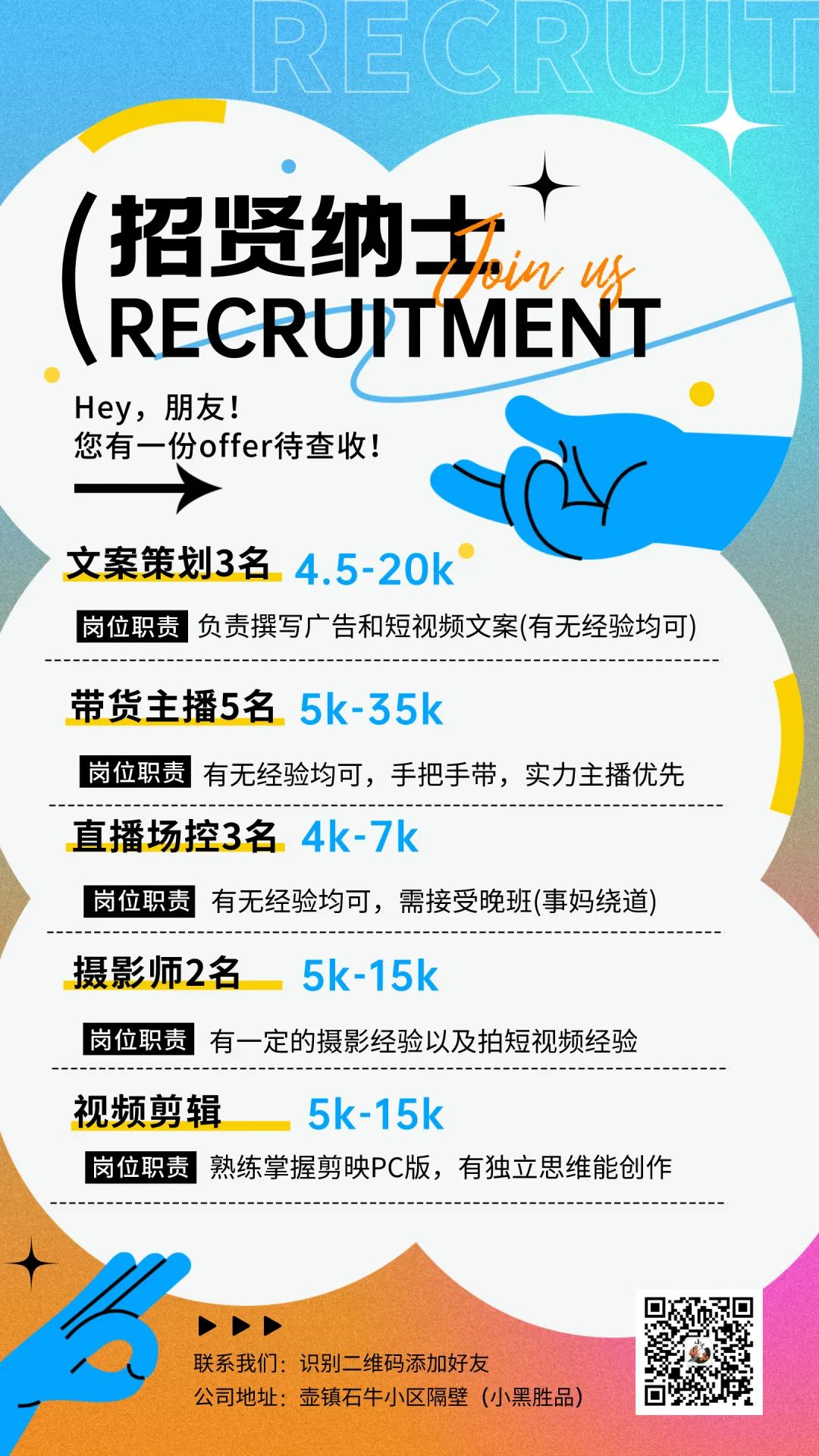 2、初中及以上学历,会写简单的报表,有开机经验优先。