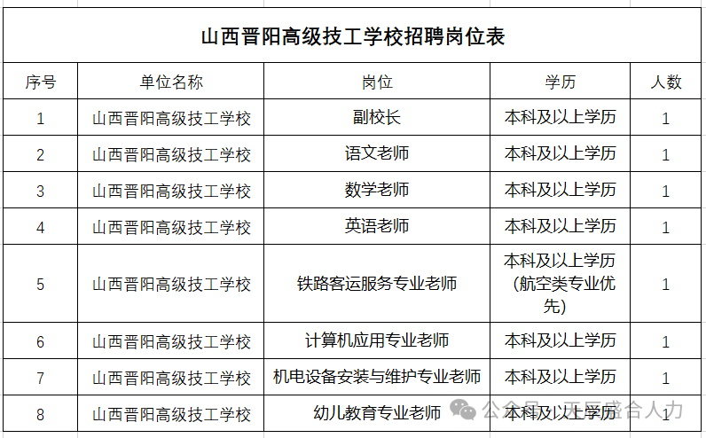 点击上方蓝色字体关注“晋聘信息汇”每天发布招聘信息
