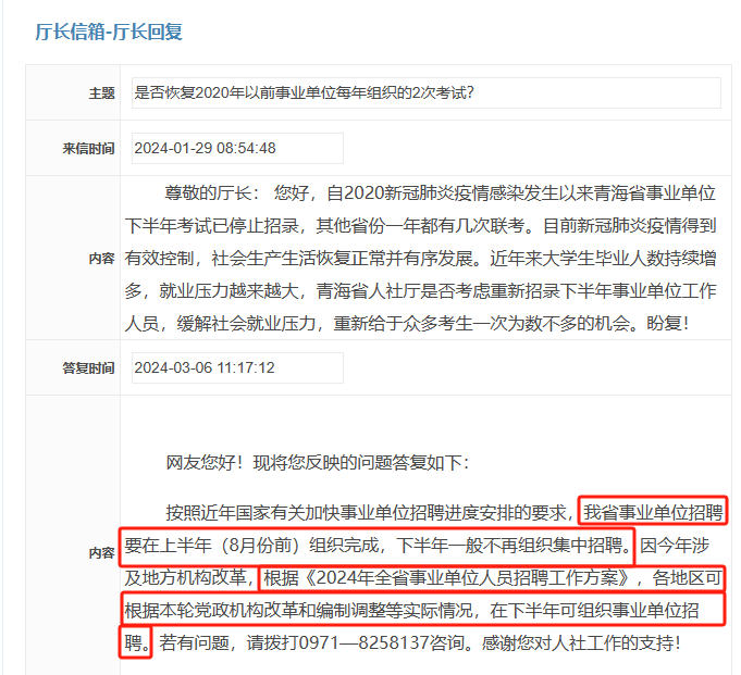 >官方回复:2024年青海省下半年事业单位招聘消息