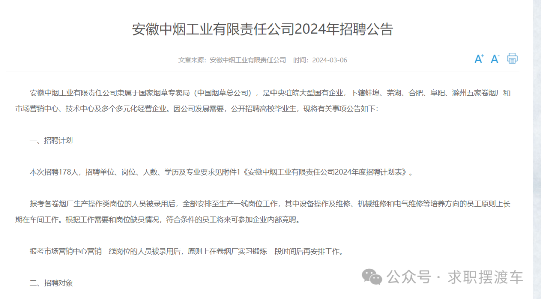 当前位置:首页>华北>安徽中烟工业有限责任公司2024年招聘公告 往届生可报