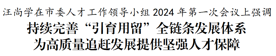 汪尚学强调,要坚持需求导向,紧盯经济社会发展实际因需引才,围绕破解产业发展“卡脖子”难题精准引才,坚持产研一体化柔性引才,着力提高人才引进质量。要坚持靶向培养,加快培育科技创新、企业管理、乡村振兴、文化艺术、教育医疗、社会管理等方面的专业型、技术型人才,着力建强重点人才队伍。要坚持破立并举,深化人才管理、评价、使用、激励等方面体制机制改革,创造更加公平公正的竞争环境,营造更加积极向上的工作氛围,确保各类人才留得住、用得好。要坚持协同联动,树立“一盘棋”思想,着力构建党委牵头抓总、成员单位各司其职、各个方面协同发力的人才工作格局,推动人才工作全面提质增效。