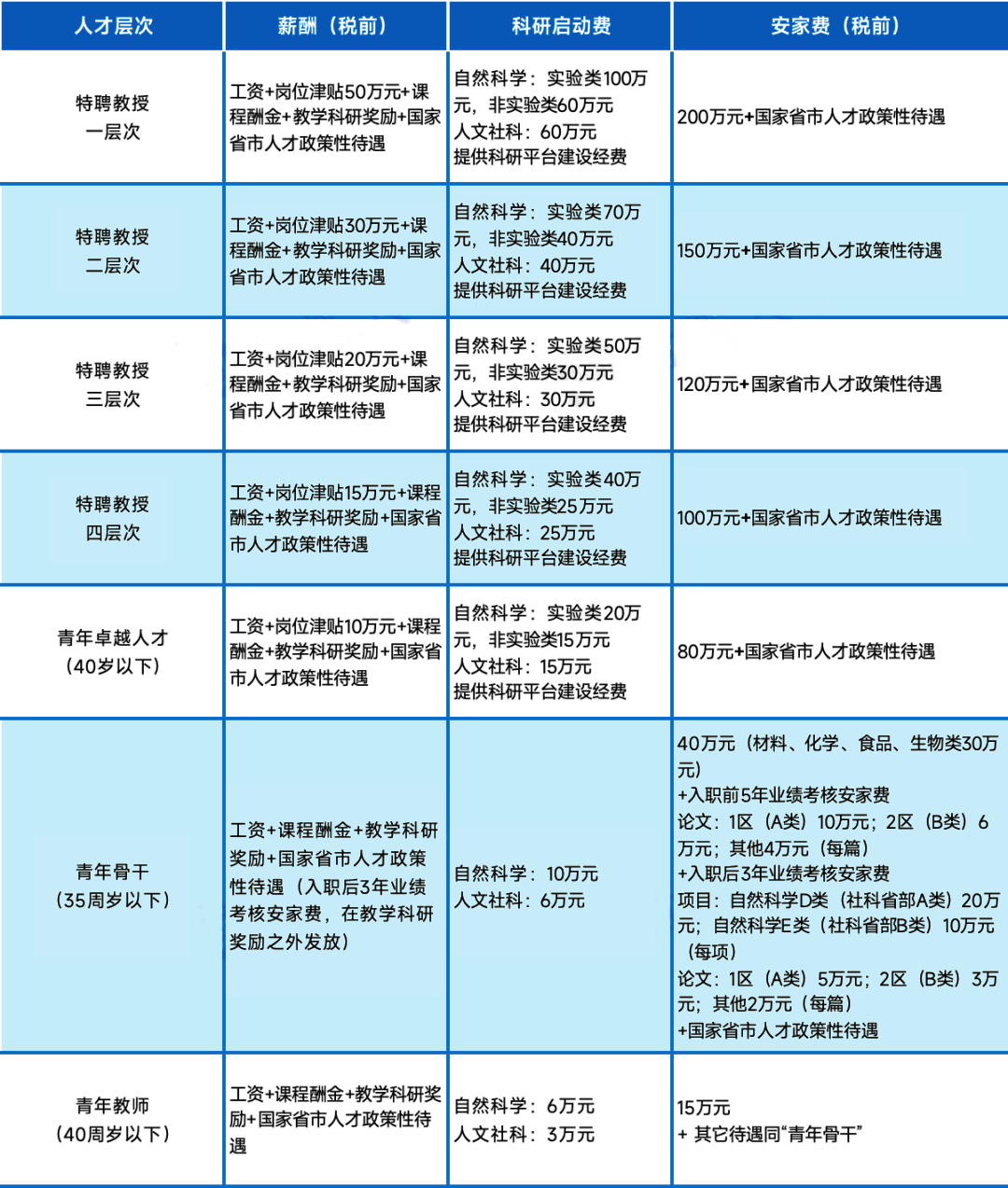 特聘教授、青年卓越人才、青年人才分为人文社科类和自然科学类两大类。人文社科类包括:哲学、经济学、法学、教育学、文学、历史学、管理学、艺术学。自然科学类包括:理学、工学、农学、医学。