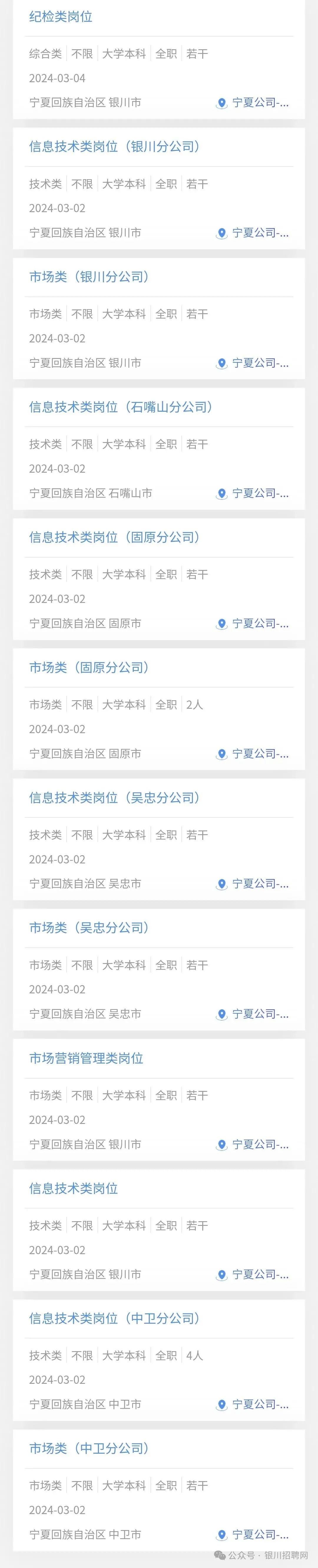 服务内容:我们为企业和个人提供中卫招聘信息,中卫沙坡头区招聘信息,中卫中宁县招聘信息,中卫海原县招聘信息;中卫国企招聘,中卫事业单位招聘、中卫私企招聘,中卫个体招聘等信息。有招聘发布需要的公司,请点击顶部关注中卫招聘获取小编微信咨询发布招聘事宜。