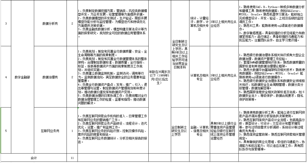 5 | 互联网业务岗 | 1 |
