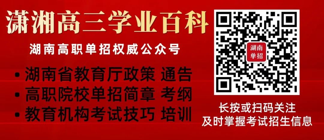 大家在备考过程中,可以把“潇湘高三学业百科”微信公众号,推荐给身边需要单招的同学,这里很多文章对大家单招帮助会很大。