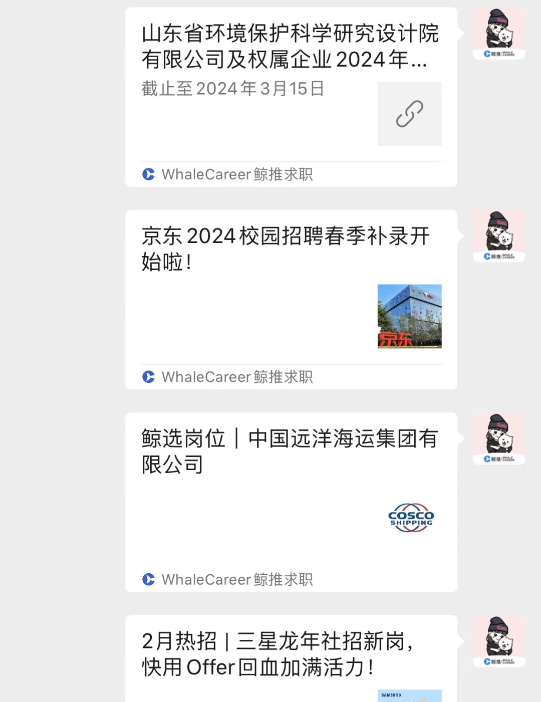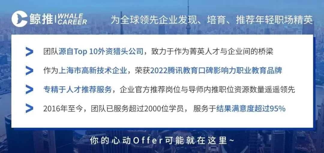 点击下方卡片进入 WhaleCareer鲸推求职 微信公众号