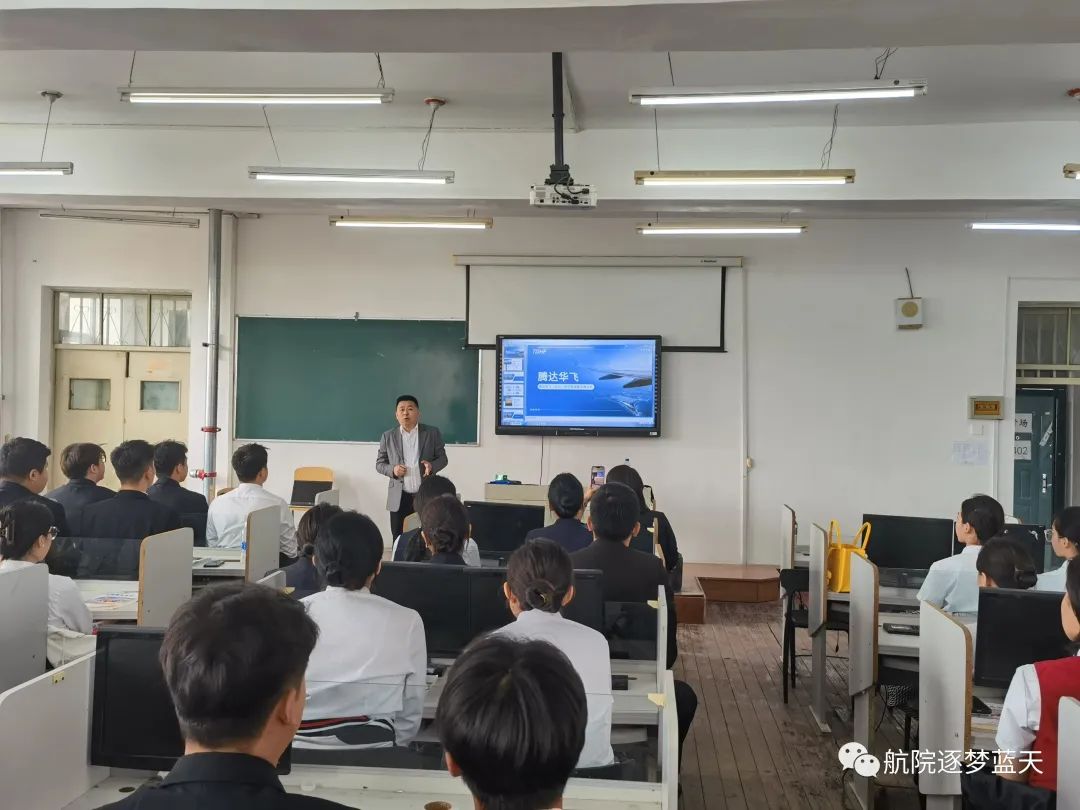 宣讲时腾华航空的负责人与航院学子之间积极互动,主要介绍了企业文化及企业特点,详细说明薪资待遇及员工福利,并有实习经验的航院学长解答在场学生们的疑问。