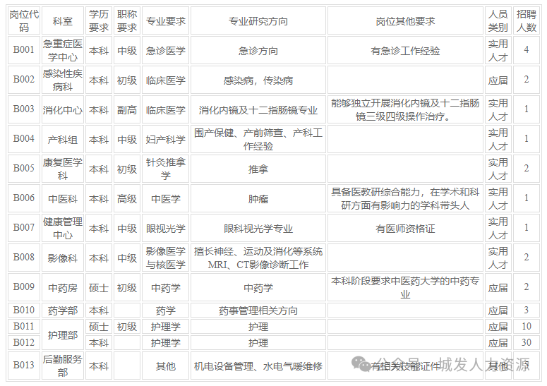 应届本科毕业生年龄不超过25岁,应届硕士研究生年龄不超过30岁,往届有工作经验的人员年龄不超过35岁(学科带头人可放宽年龄限制),临床类均要求具有医师资格证、规培证。