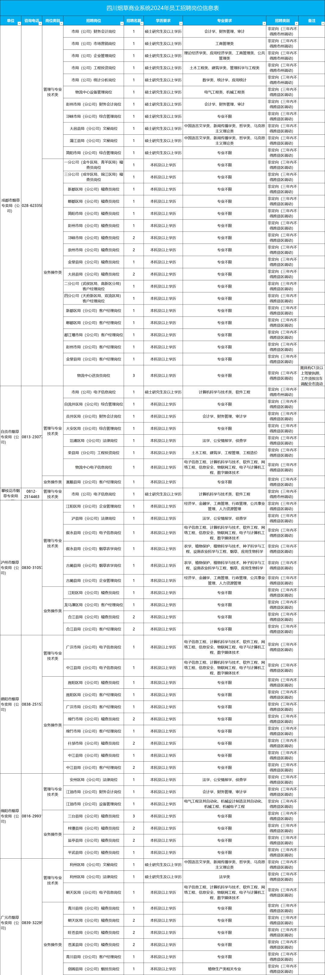 中国烟草总公司四川省公司所属市州烟草公司、烟叶复烤公司(以下简称四川烟草商业系统)本着公开、公平、公正、择优的原则,面向社会招聘员工。现将有关事项公告如下: