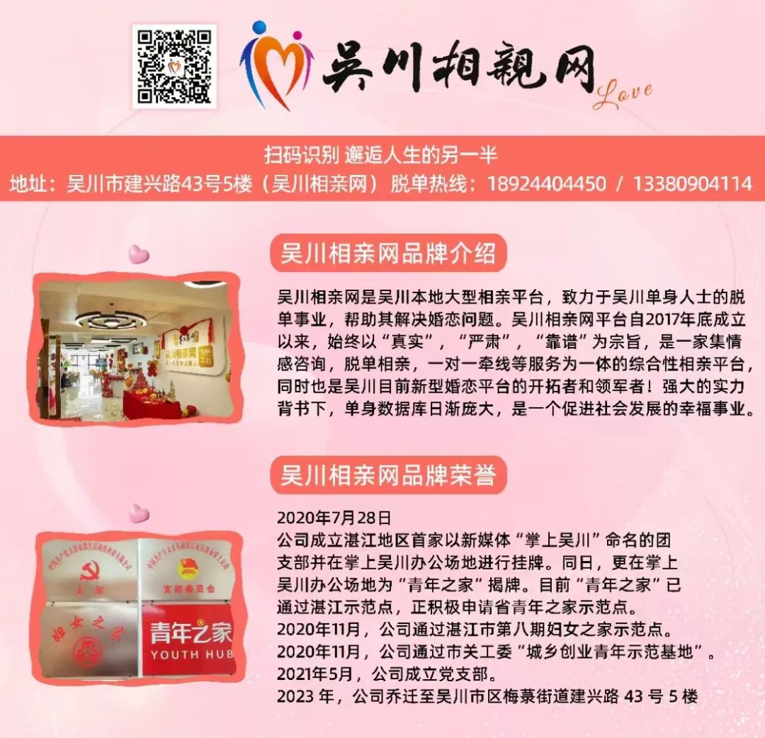 地址:吴川市建兴路43号5楼(吴川相亲网)