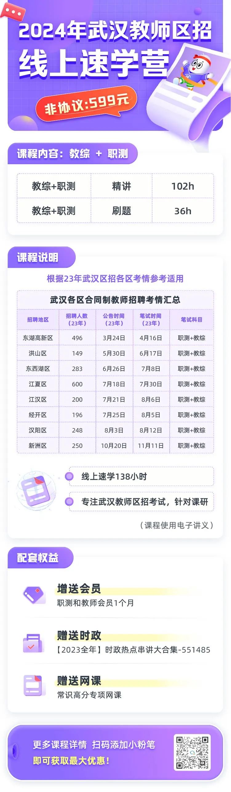 >【0元领】武汉市东湖高新区教师招聘历年试题
