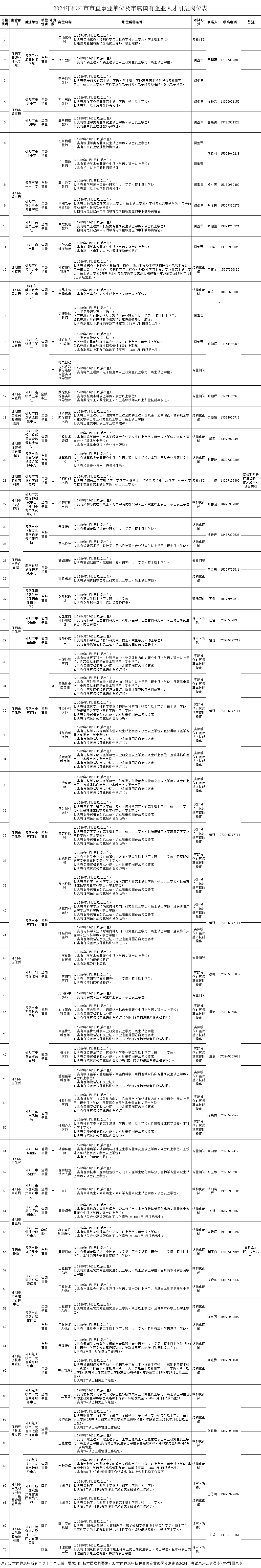湖南省卫生健康委直属事业单位2024年公开招聘工作人员276名1、招聘岗位、计划及要求