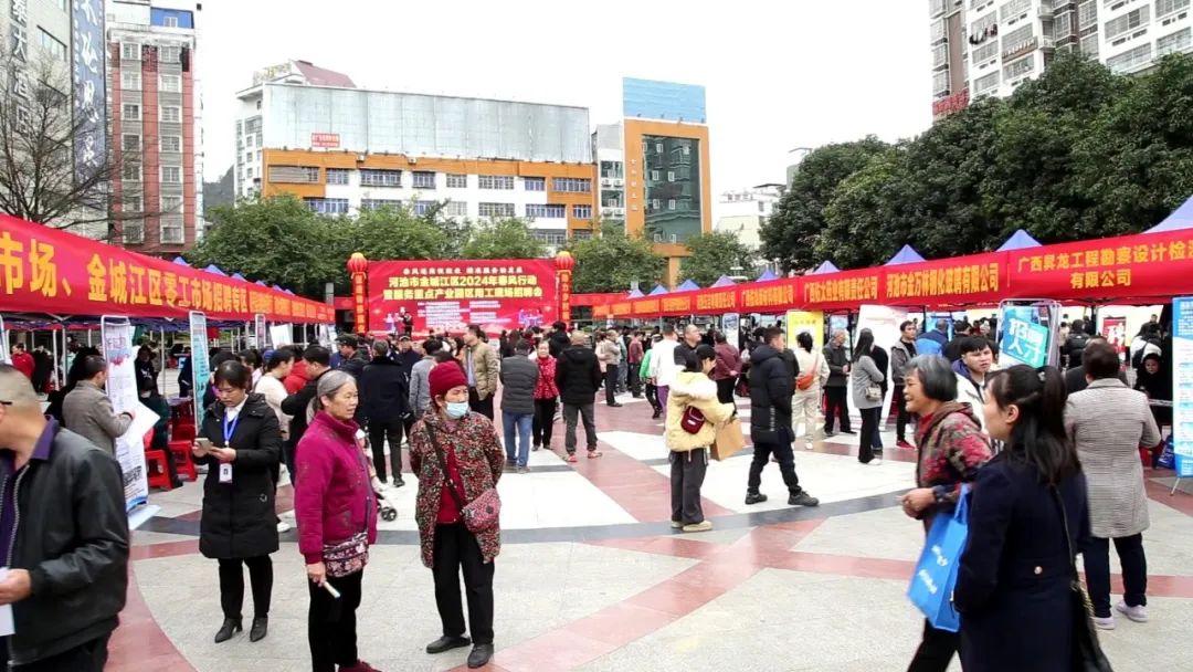 3月6日,“河池市金城江区2024年春风行动暨服务重点产业园区用工现场招聘会”在文化广场举行。