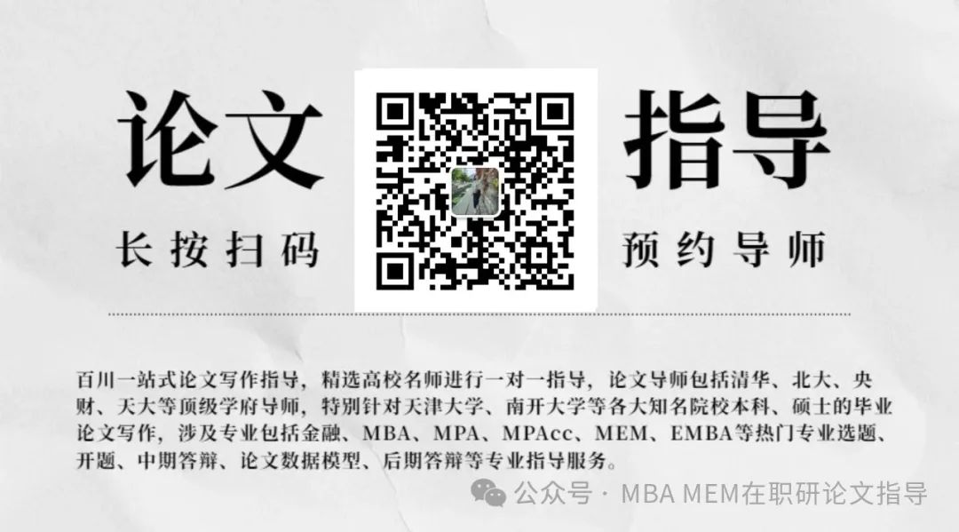 百川MBA MEM在职研论文指导,精选高校名师进行一对一指导,论文导师包括清华、北大、央财、天大等顶级学府导师,特别针对天津大学、南开大学等各大知名院校本科、硕士的毕业论文写作,涉及专业包括金融、MBA、MPA、MPAcc、MEM、EMBA等热门专业选题、开题、中期答辩、论文数据模型、后期答辩等专业指导服务。如果你有论文难题,添加崔老师微信预约论文写作导师1vs1服务,微信号:bcgp678.